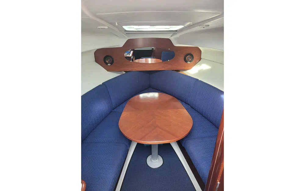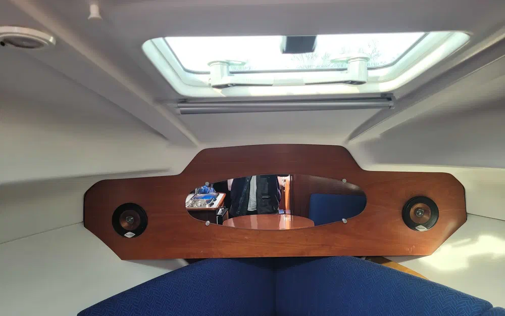 Une banquette 2 places devant le poste de barre