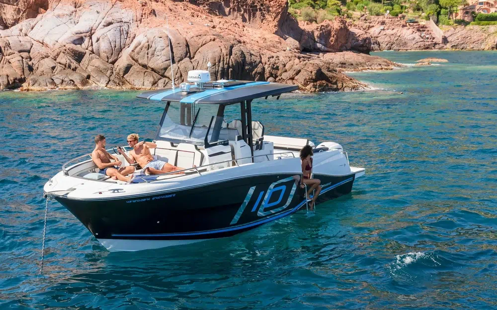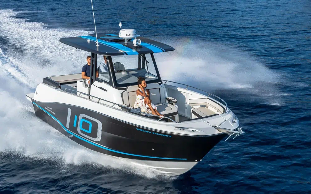 Avec ses deux vastes cockpits et son immense porte de coupée avec échelle de bain intégrée qui permet un accès privilégié à la mer, le Cap Camarat 10.5 CC est une invitation à la détente.
