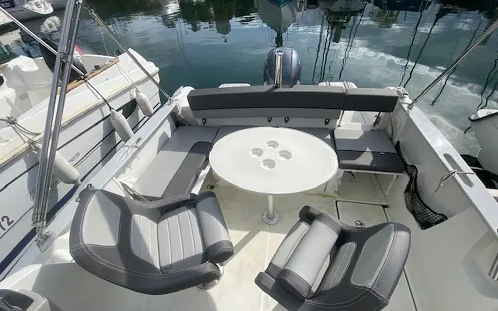 Finition première comprenant : coussins de cockpit, filet de rangement de cockpit, coussin de cabine, banquette latérale repliable luxe tribord + coussin