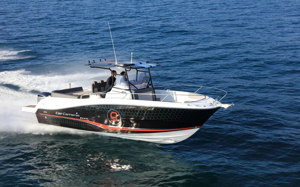 Le Cap Camarat 9.0 CC vous propose de multiples façons de vivre la mer. Particulièrement adapté à la pêche sportive, il offre une circulation très fluide sur le pont, une vaste soute de rangement, et, en version standard un leaning post comprenant vivier, glacière et porte-cannes. Pour un usage plus familial ou convivial, le leaning post peut être équipé d’un réchaud, d’un évier et d’un réfrigérateur.