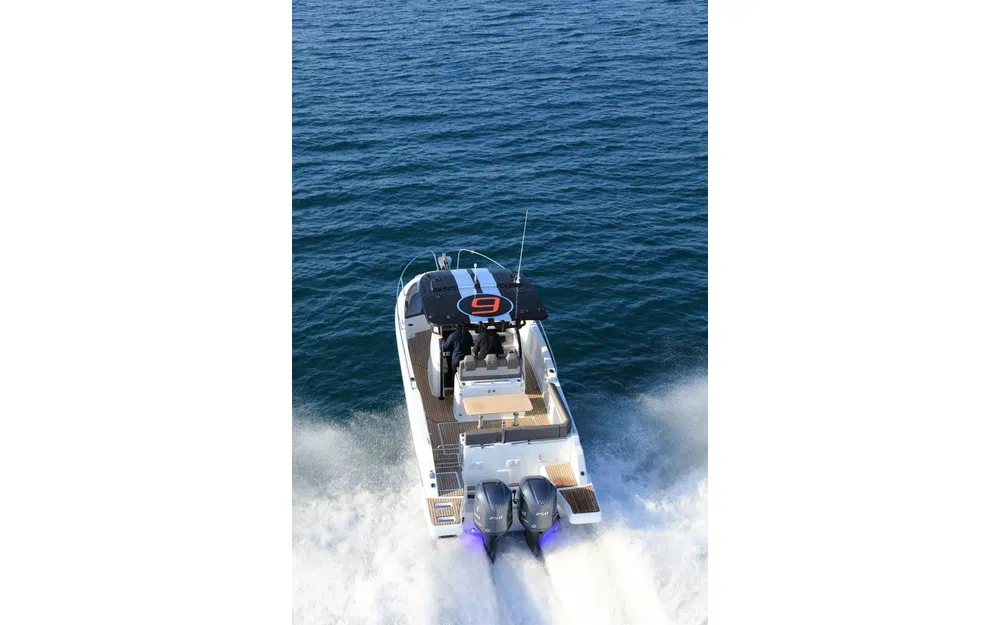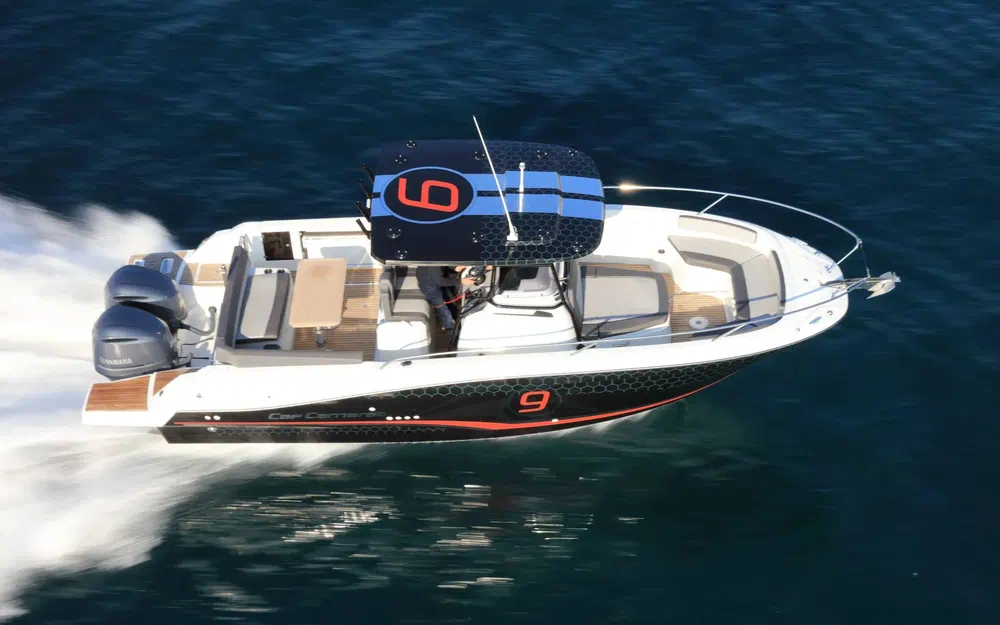 Tandis que le poste de pilotage peut accueillir deux à trois personnes face à la console, les vastes cockpits avant et arrière permettent de varier les plaisirs en navigation comme au mouillage, où ils se transforment en bain de soleil ou en salon, en un tournemain. Sous la console, le Cap Camarat 9.0 CC présente une surprenante cabine double très lumineuse avec d’astucieux rangements, ainsi que des WC, vasque et douche. Un espace peut même être aisément converti en couchage supplémentaire pour deux enfants. Sorties familiales, parties de pêche endiablées ou apéro entre amis devant un coucher de soleil… Le Cap Camarat 9.0 CC répond présent à toutes vos envies.