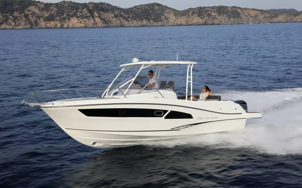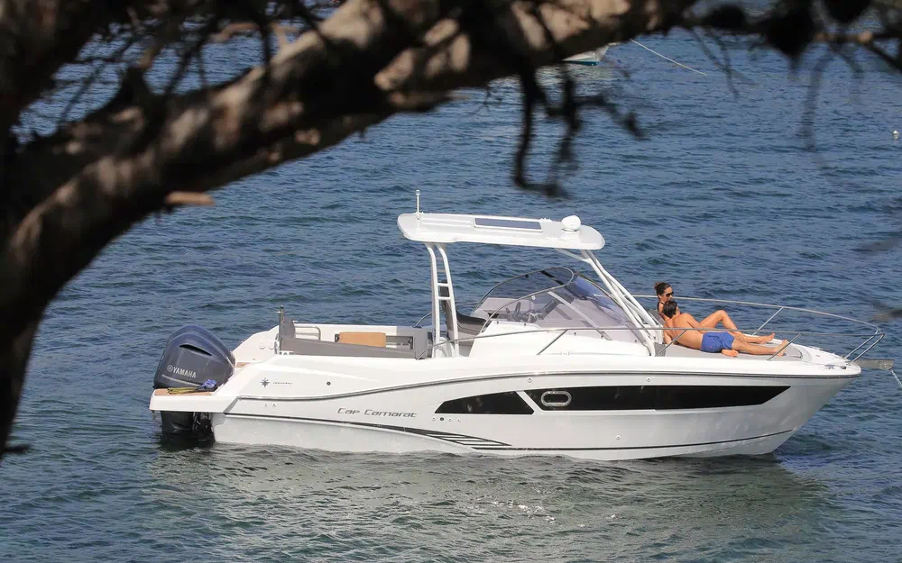 Doté d’une carène en V signée Michaël Peters, le Cap Camarat 9.0 WA offre une tenue en mer véritablement remarquable et de multiples options de motorisation allant jusqu’à 2 x 250 CV, pour des pointes de vitesse à 45 nœuds. En navigation, il offre deux places cheveux au vent sur des sièges bolsters face au poste de pilotage, et plusieurs autres plus abritées dans le carré de cockpit en L à l’arrière. Au mouillage, le bateau s’adapte à vos envies : bain de soleil, accès à la baignade, coin repas avec une cuisine extérieure et réfrigérateur en option.