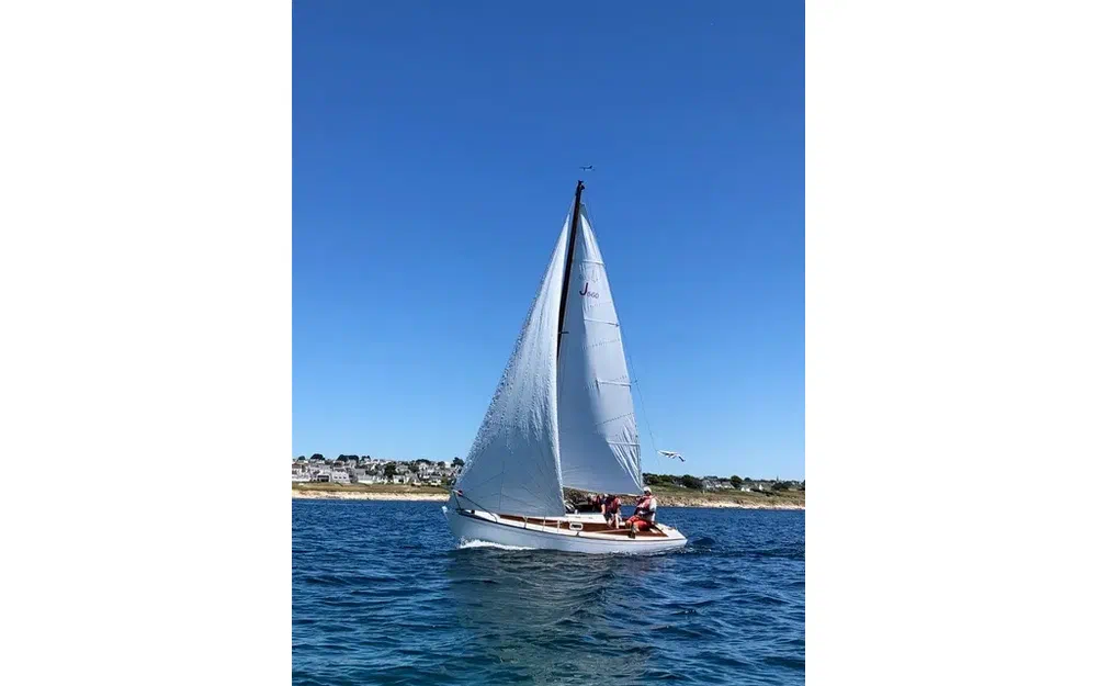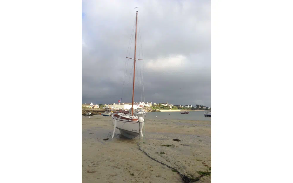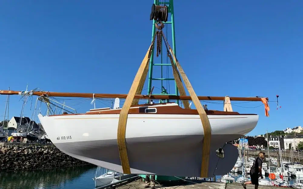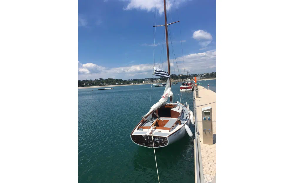Œuvres mortes : Décapage, vidé les joints, calfatage, joints 2k, 4 couches de primer, 3 couches de laque Epifane restauration de l’étrave, ferrure inox neuve.